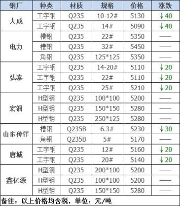 跌幅最大為大成工字鋼;