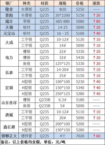 漲幅最高為南鋼螺紋鋼;