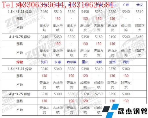 全國15個主要市場1.5寸*3.25 焊管平均價格5385元/噸,較上個交易日上調19元/噸。